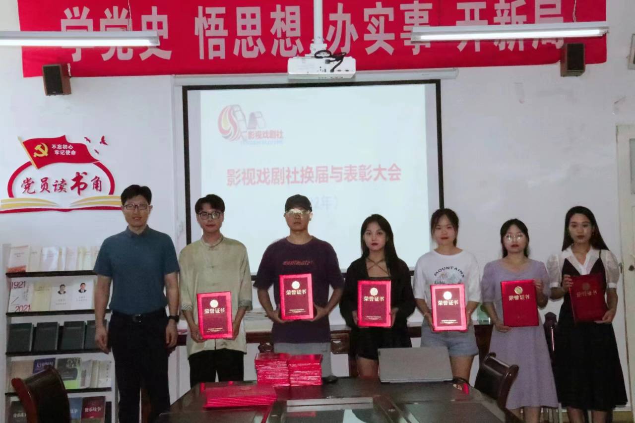 2022年6月24日下午,公司影视戏剧社换届与表彰大会在江南校区2307会议室召开。suncitygroup太阳集团党总支书记芦伟、副书记杨海蓉、影视戏剧社指导老师邹棠华以及影视戏剧社成员近三十人出席了会议。会议由影视戏剧社常务副社长桑雪同学主持。