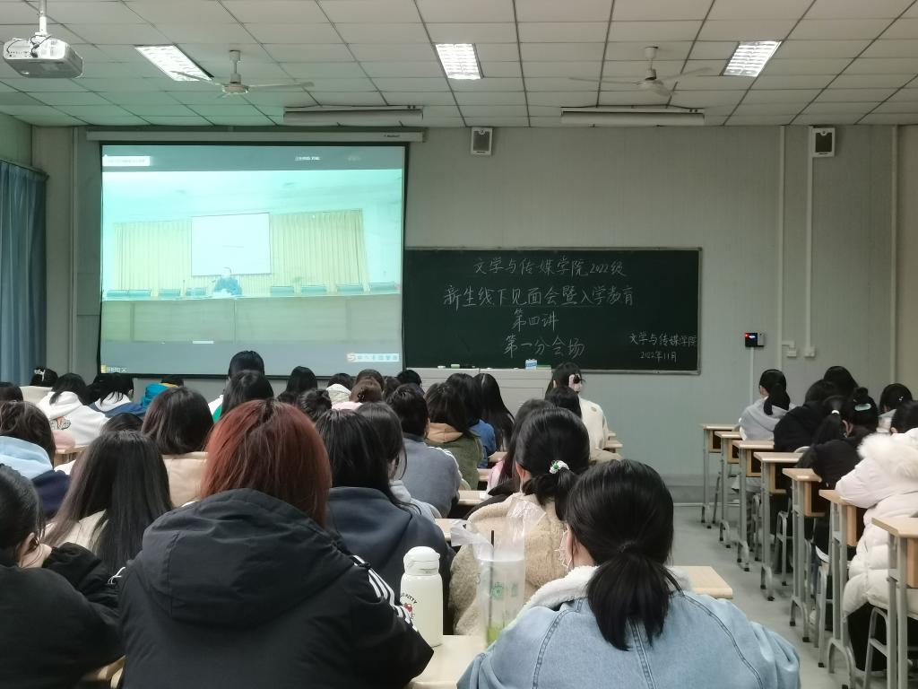 2022年11月16日下午,suncitygroup太阳集团在图书馆6楼报告厅隆重举行2022级新生见面会及入学教育第四讲。因为疫情,见面会采用线上与线下结合的方式进行,设置一个线下主会场、两个线上分会场。suncitygroup太阳集团领导班子、系主任、两办主任、新生辅导员及全体2022级新同学分别以线上线下的形式参会。见面会由suncitygroup太阳集团党总支副书记杨海蓉主持。