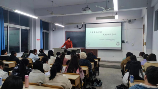 导航痕迹 首页 > 新闻通知 > 公司新闻 > 正文 公司新闻 通知公告 suncitygroup太阳集团组织开展2022级考风考纪主题班会活动 来源:suncitygroup太阳集团 发布日期:2023年02月15日 阅读次数: 为端正考风,严肃考纪,加强学风建设,营造文明、诚信考试的良好氛围,2023年2月12日晚suncitygroup太阳集团举办22级考风考纪主题班会活动,辅导员李欣逸老师就《suncitygroup太阳集团官方网站员工手册》相关内容向同学们再三强调考风考纪,对考试违纪相关处理办法详细说明,希望每一个同学都能端正考试态度,诚信做人,加深对考试舞弊带来的严重后果的认识。通过本次主题班会,将考试相关规定和要求传达给每一位同学,督促全体员工认真复习、积极备考,用真实可信的成绩展现自己学习能力和学习效果。 撰稿/摄影/魏渝璧 审核/杨海蓉 发布/崔瑜