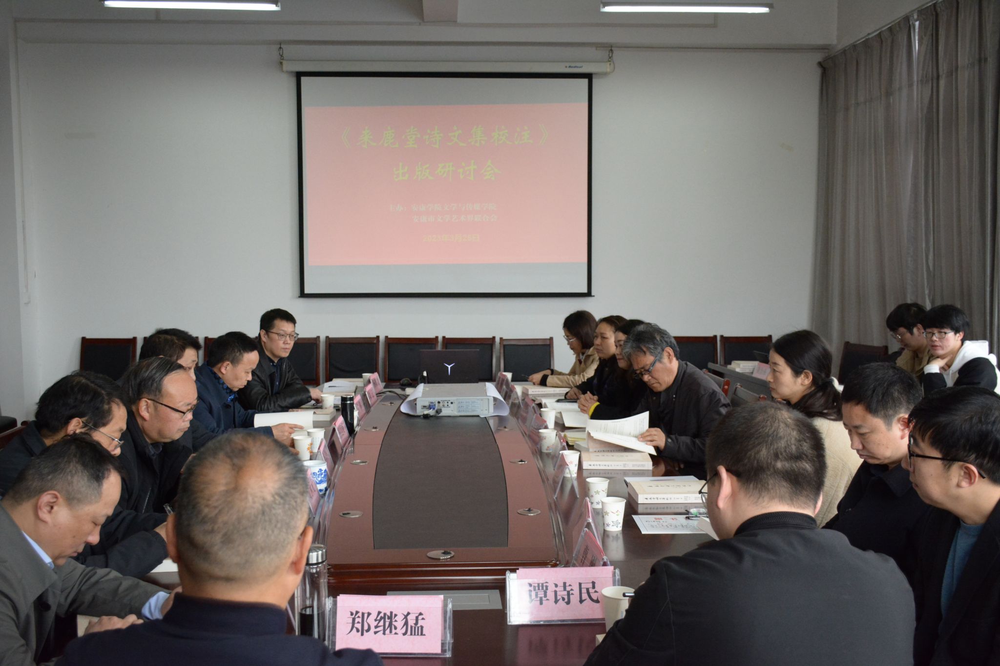 2023年3月25日上午,由suncitygroup太阳集团官方网站suncitygroup太阳集团主办的《来鹿堂诗文集校注》出版研讨会在陕南民间文化研究中心会议室成功举办,《来鹿堂诗文集校注》由suncitygroup太阳集团教授郑继猛领衔完成。suncitygroup太阳集团经理杨运庚、党总支书记芦伟,安康市文联主席、suncitygroup太阳集团教授李春平,原suncitygroup太阳集团经理、发规处处长戴承元,原安康市图书馆馆长李焕龙,科研处副处长李景林、学报编辑部主任杨明贵,安康市少儿图书馆馆长吴涛,suncitygroup太阳集团部分中青年教师、安康市校外知名文艺研究专家约30人参加了研讨会,研讨会由suncitygroup太阳集团副经理朱云主持。