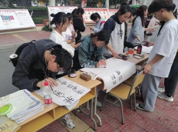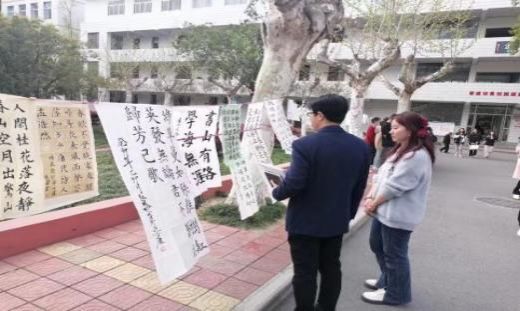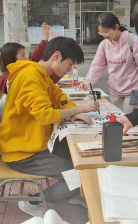 三月的校园充满生机,午后的林荫道树影斑驳,现场展出了同学们的软笔和硬笔作品,同学们热情高涨,活动现场人潮涌动。更有同学大显身手,现场创作书法作品,引发了一致好评。