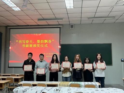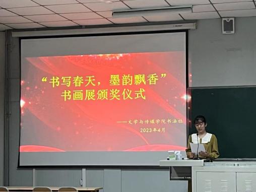 在本次书法展活动中涌现出了一批优秀的书画作品,本社于2023年4月14日晚上7:00在1012教室举行了颁奖仪式,对于获奖同学进行了表彰。