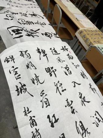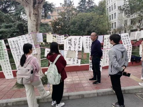 因为书法展活动,同学们相聚于此,停下忙碌的脚步,驻足观赏,感受书法的魅力,感受中国传统文化的魅力。