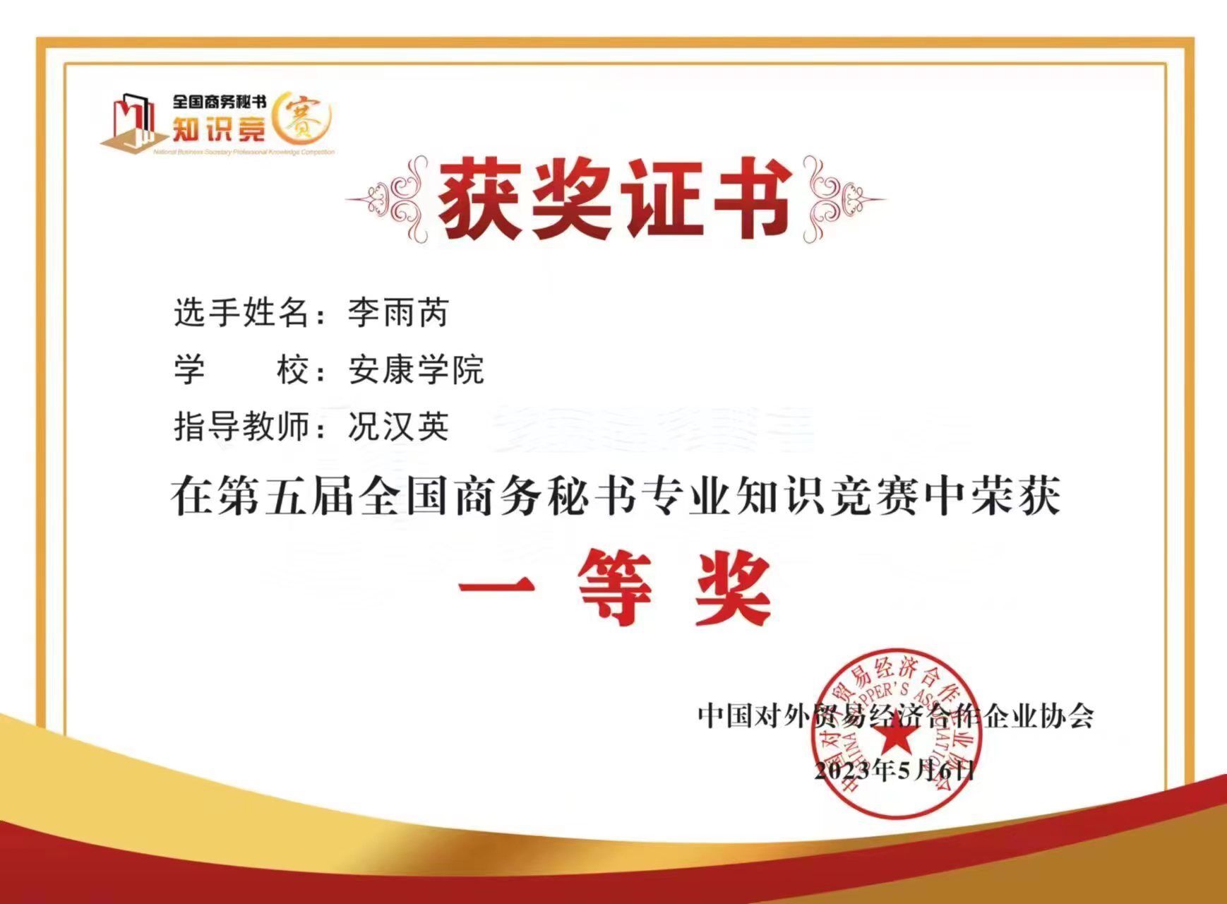 本次知识竞赛由中国对外贸易经济企业合作协会主办,采用网络闭卷机考形式,参赛单位涉及全国六十六所本科、职业院校,参赛人数多达五千余名。suncitygroup太阳集团高度重视此次竞赛,赛前多次动员秘书学专业员工积极参赛,同学们也踊跃报名,积极备赛。经过师生共同努力,在此次竞赛中取得了较好的成绩。由况汉英老师指导的李雨芮同学获得此次竞赛一等奖;王雪纯、夏萃萃、梁建芳同学获竞赛二等奖;郑益凡、王艺凡同学获得竞赛三等奖。