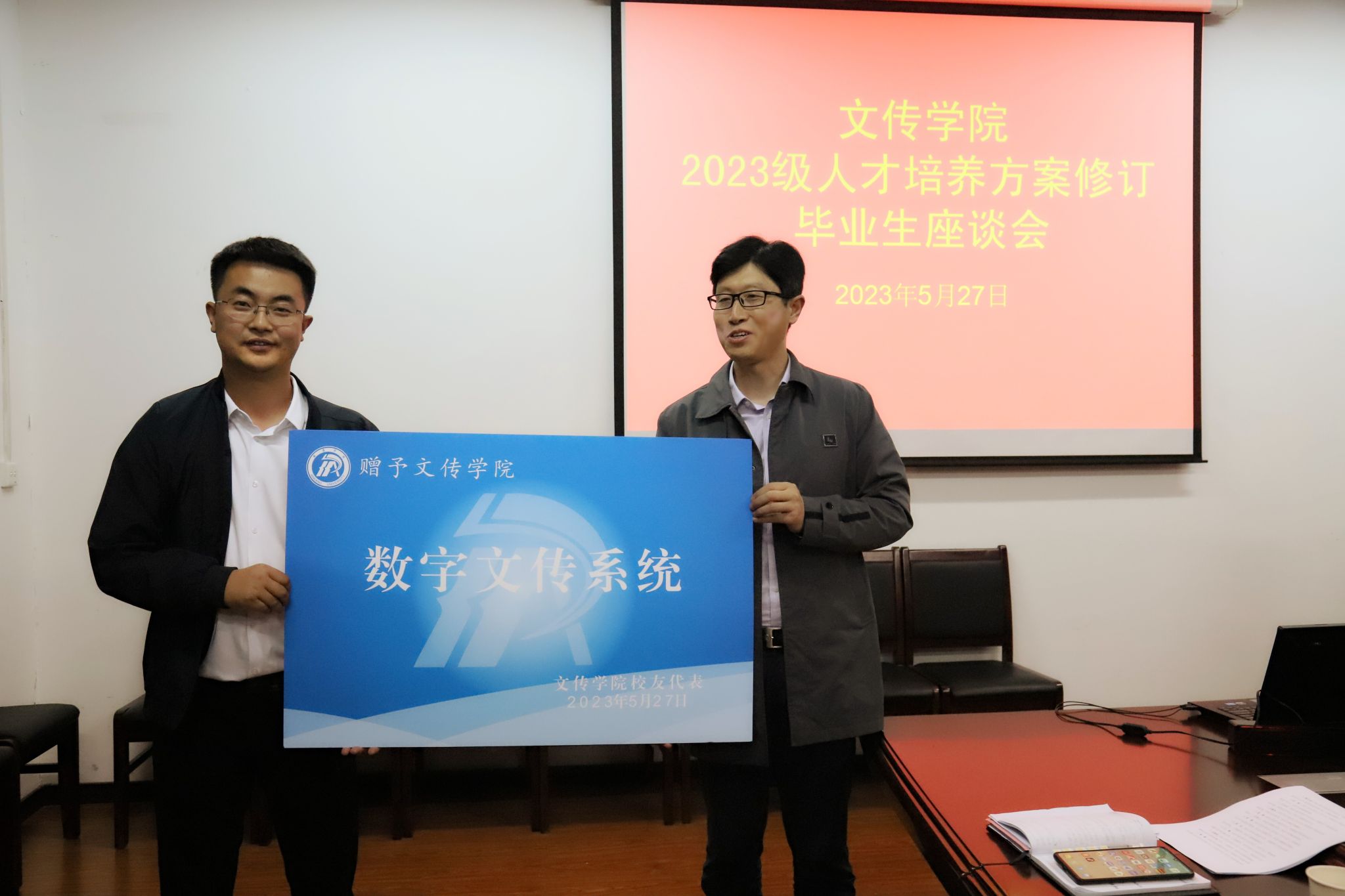 2010届员工翟晓东还向公司捐赠了“数字文传”建设系统,公司领导向返校员工赠送了公司纪念品。