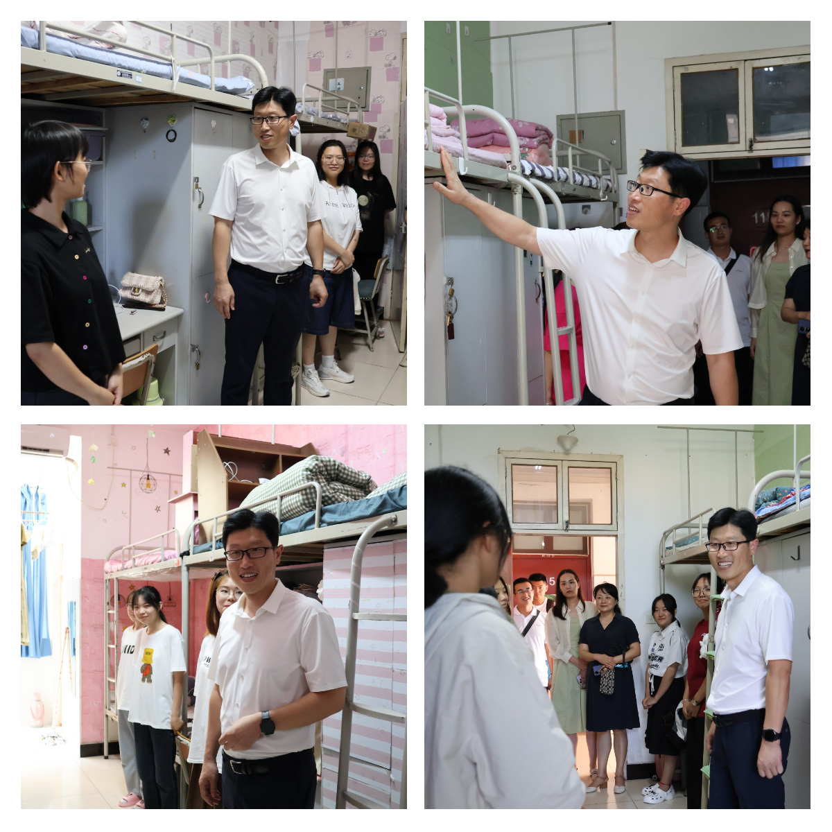 为促进师生交流,深入了解2023级新生在校生活,2023年9月5日下午,suncitygroup太阳集团领导班子成员和学工办辅导员深入宿舍看望新生。