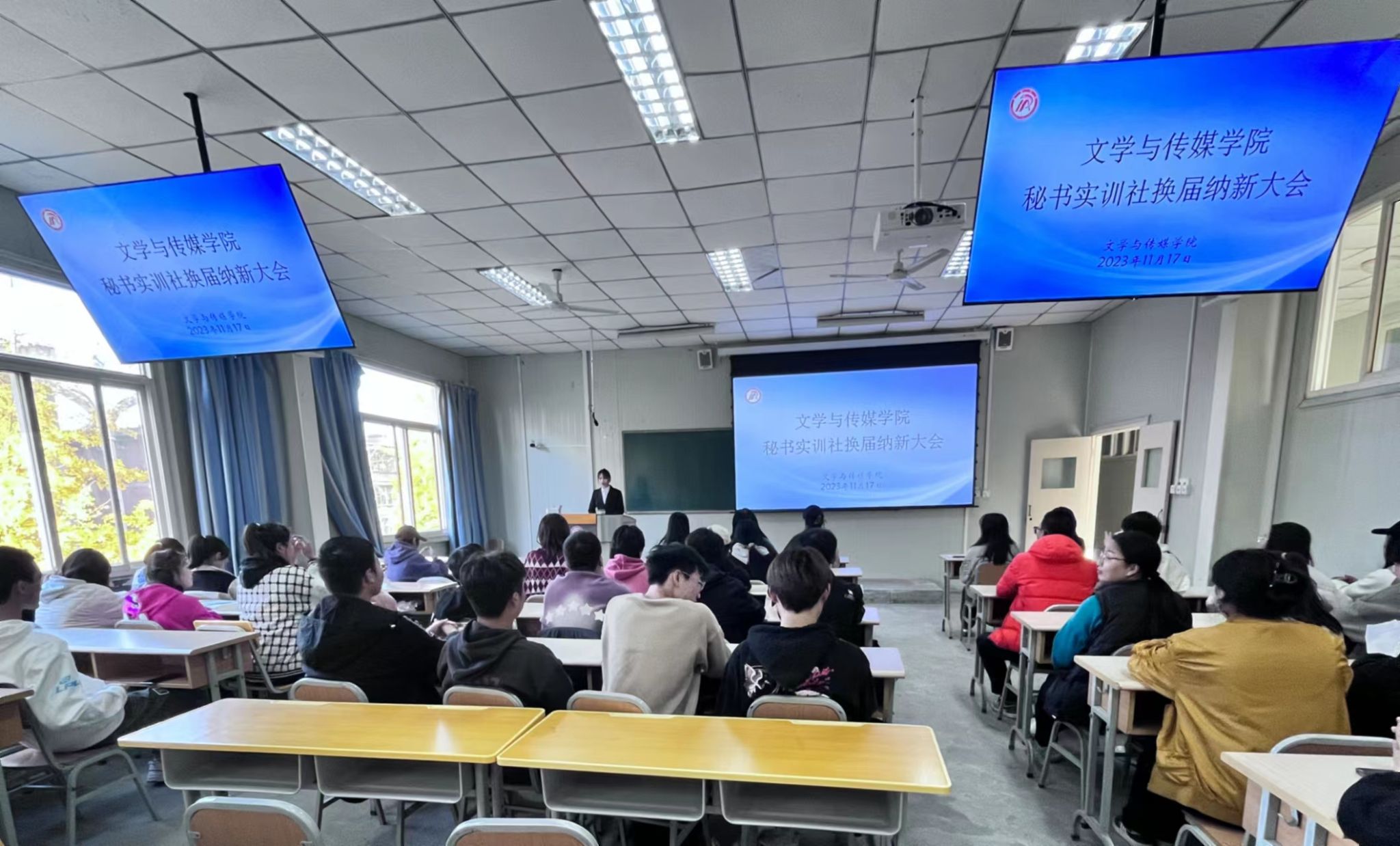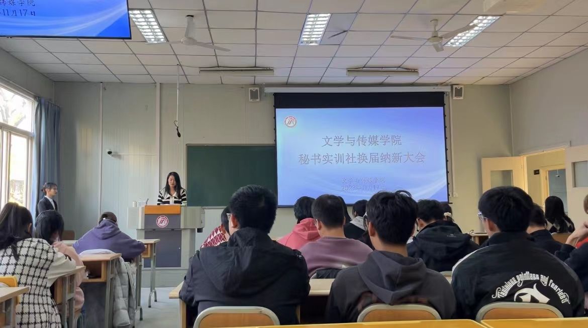 为加强公司秘书学专业员工实训实践,促进学科交流,搭建更宽阔的秘书实务平台,2023年11月17日下午4点30分,suncitygroup太阳集团秘书实训社在十号楼1028教室顺利举办了换届纳新大会,指导老师况汉英应邀出席本次会议,秘书学2021级、2022级以及2023级全体同学参会,秘书学2021级陈玉静主持。