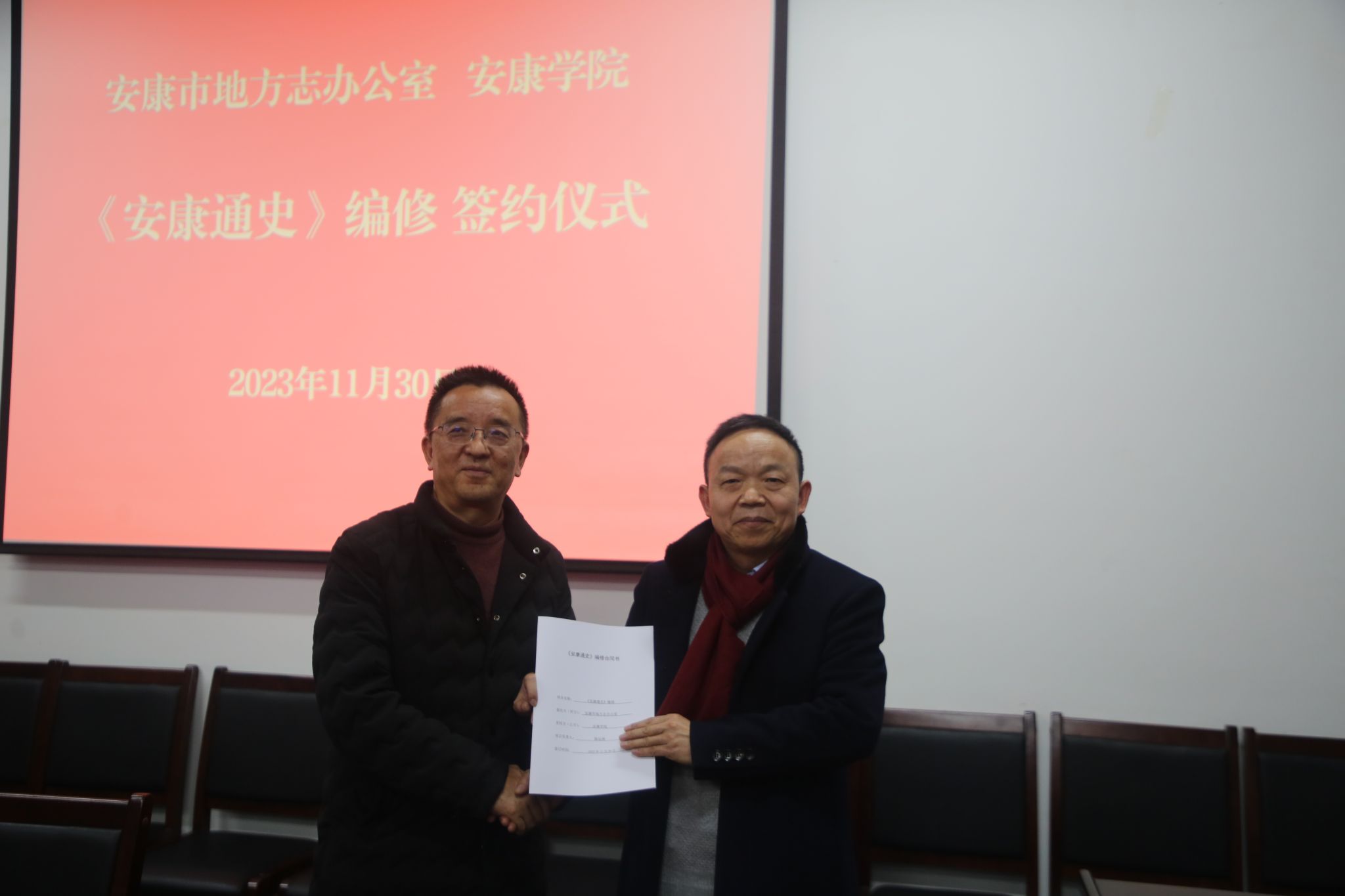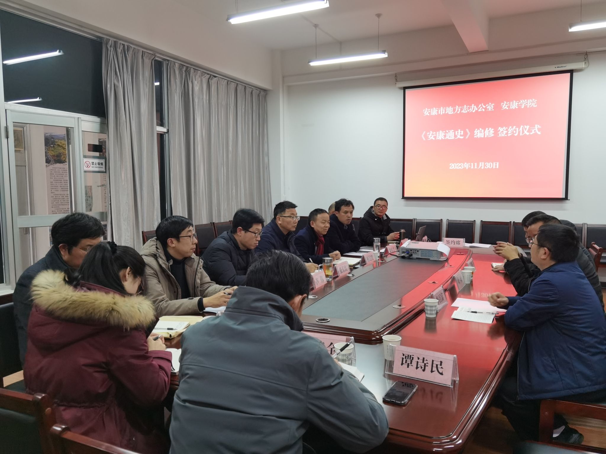 11月30日下午,安康公司和安康市方志办编修《安康通史》签约仪式在陕南民间文化研究中心会议室隆重举行。安康市方志办主任萧诚、副主任李百富、调研员薛正华和公司科研处副处长黎欢吉、suncitygroup太阳集团经理杨运庚、副经理曹刚及编写组成员共同参加签约仪式,公司党委副书记张东红出席仪式并作指导讲话。签约仪式由suncitygroup太阳集团党总支书记芦伟主持。