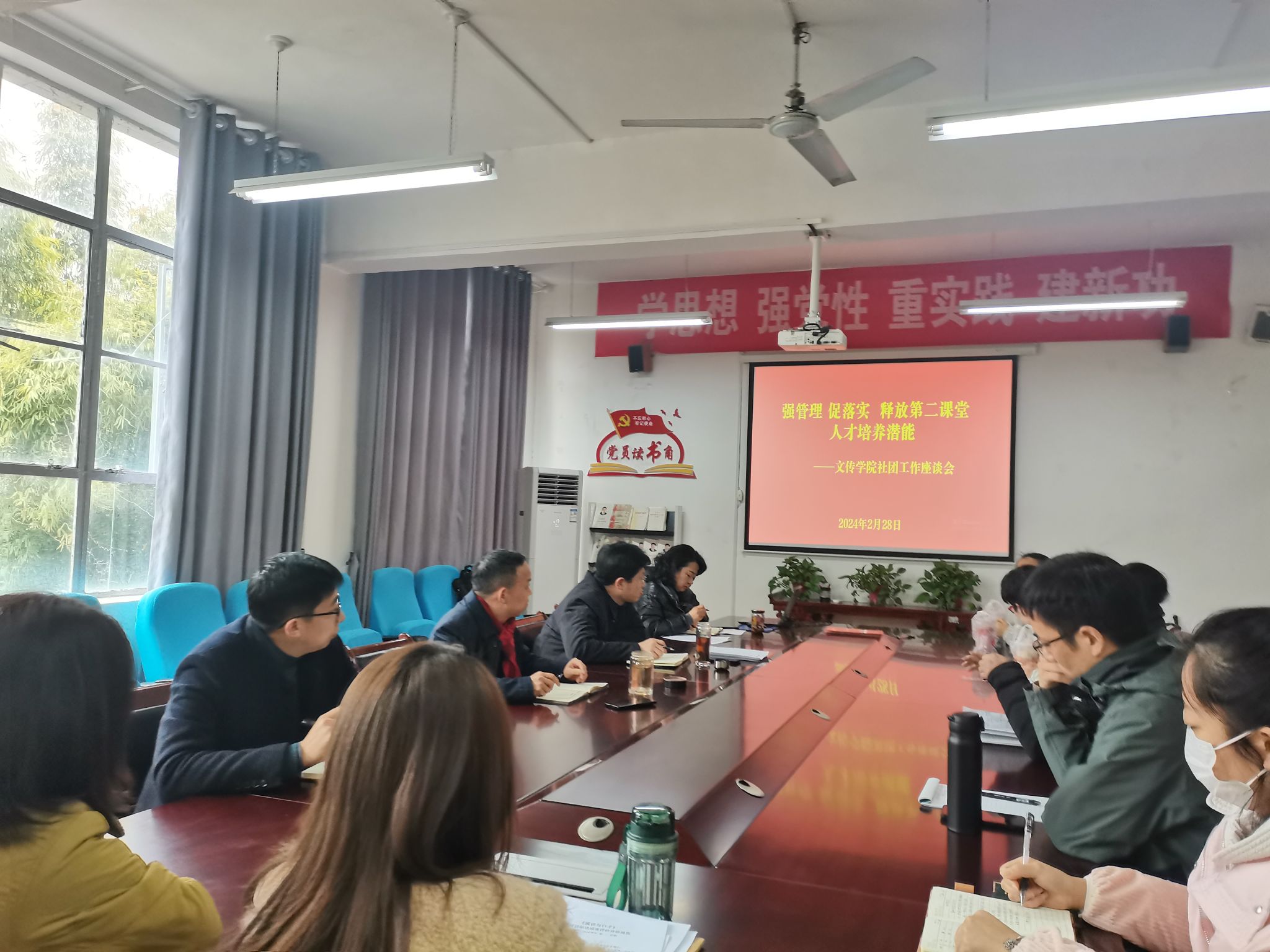为切实提高员工社团管理水平,激发员工参与社团活力,释放第二课堂教学潜能,suncitygroup太阳集团2月28日下午在2307会议室,召开以“强管理,促落实,释放第二课堂教学潜能”为主题的工作座谈会,经理杨运庚、党总支书记芦伟及公司其他分管相关工作的班子成员和社团指导教师参加座谈。