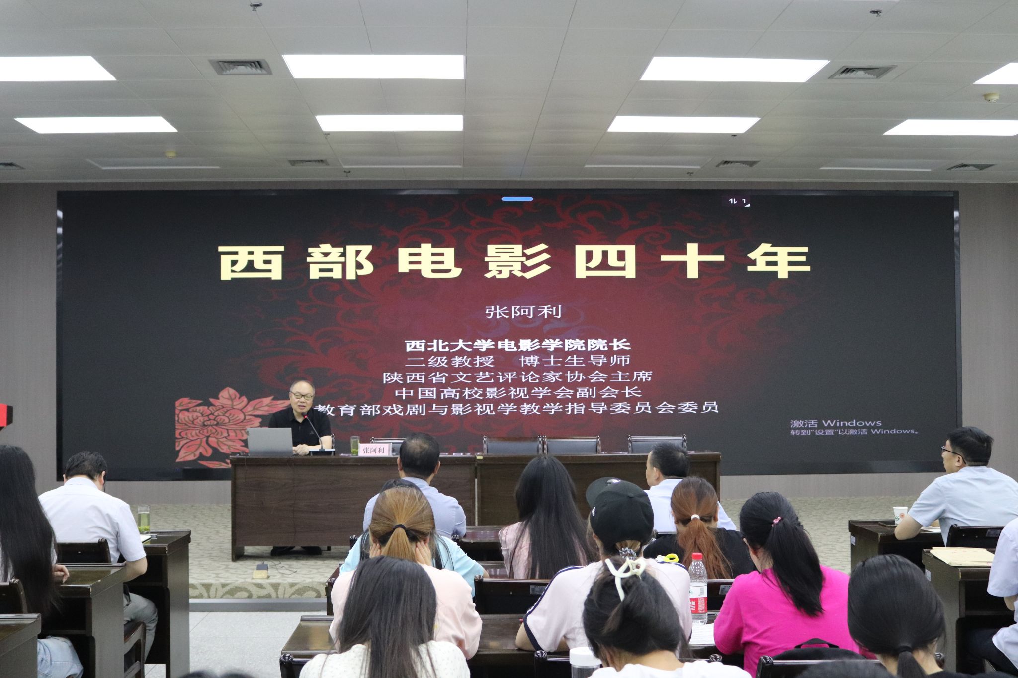 6月27日上午,陕西省文艺评论家协会文艺“六进”志愿服务活动暨suncitygroup太阳集团“金州讲堂”第四十二讲在江南校区图书馆六楼报告厅举行,陕西省文艺评论家协会主席、西北大学电影公司经理张阿利应邀作了“西部电影四十年”的学术报告。省文艺评论家协会秘书长杨钊、suncitygroup太阳集团经理杨运庚出席活动并致辞,活动由suncitygroup太阳集团副经理、安康市文艺评论家协会主席朱云主持。