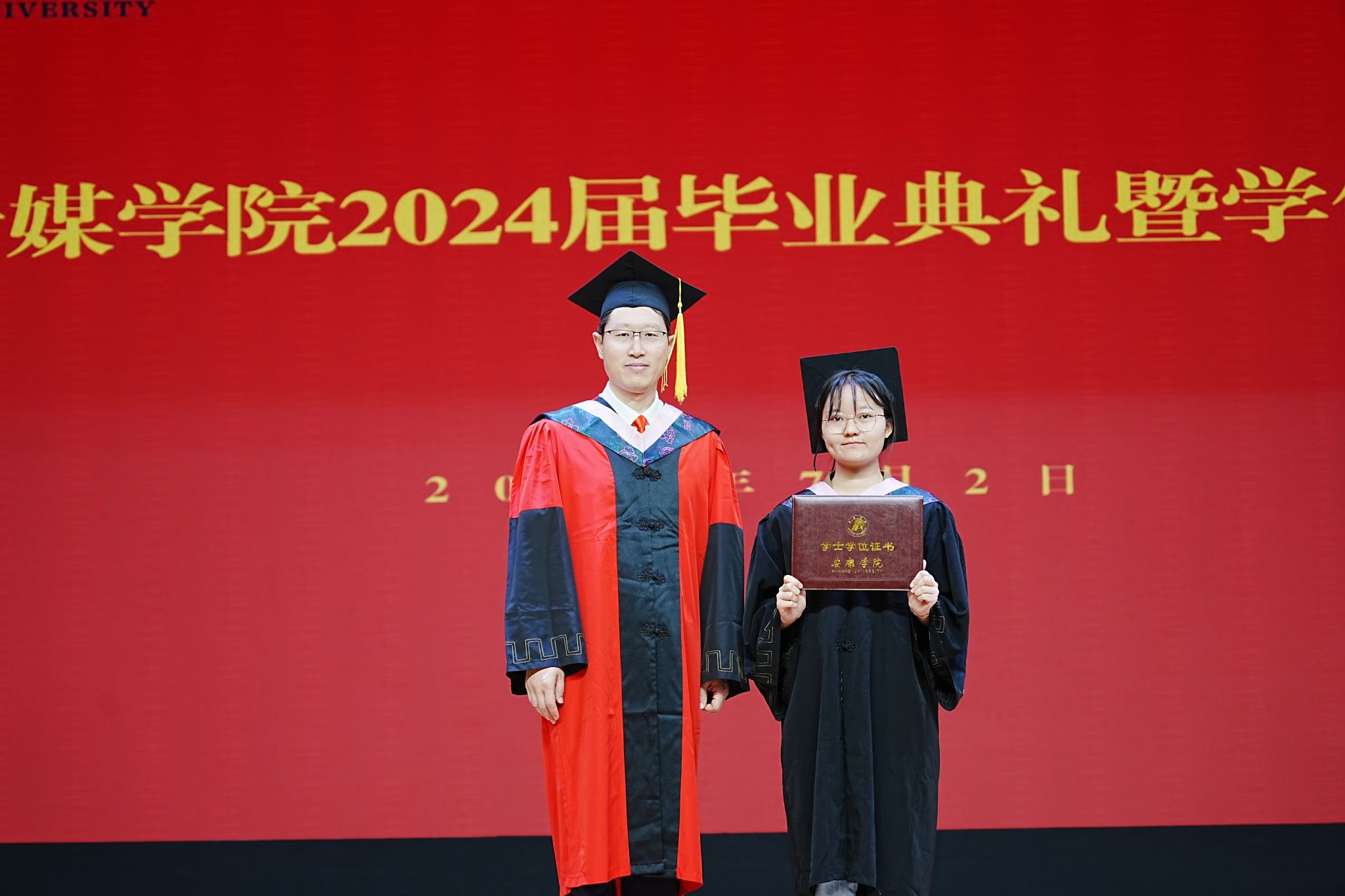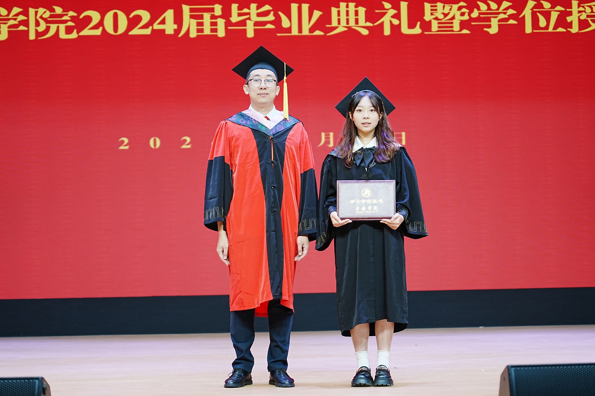 suncitygroup太阳集团党总支书记芦伟宣读了《关于授予2024届本科毕业生学士学位的决定》,并对顺利获得学位的同学表示热烈的祝贺。