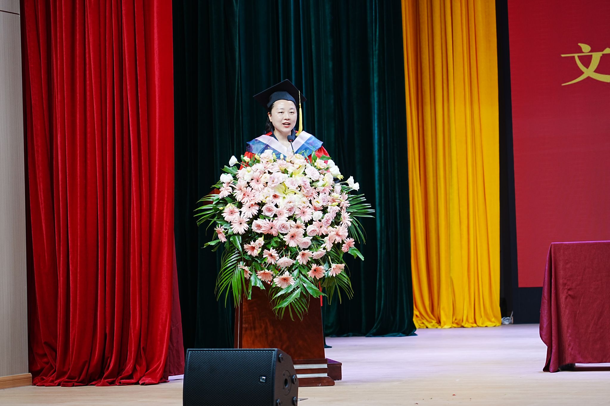 周海霞老师作为教师代表发言,她寄语全体毕业生:生命的价值在于奋斗,希望毕业生要在奋斗中认识自我,每一个人的未来都是不可限量的!要在奋斗中完善自我,在奋斗中成为更好的自我!在奋斗中体验人生。