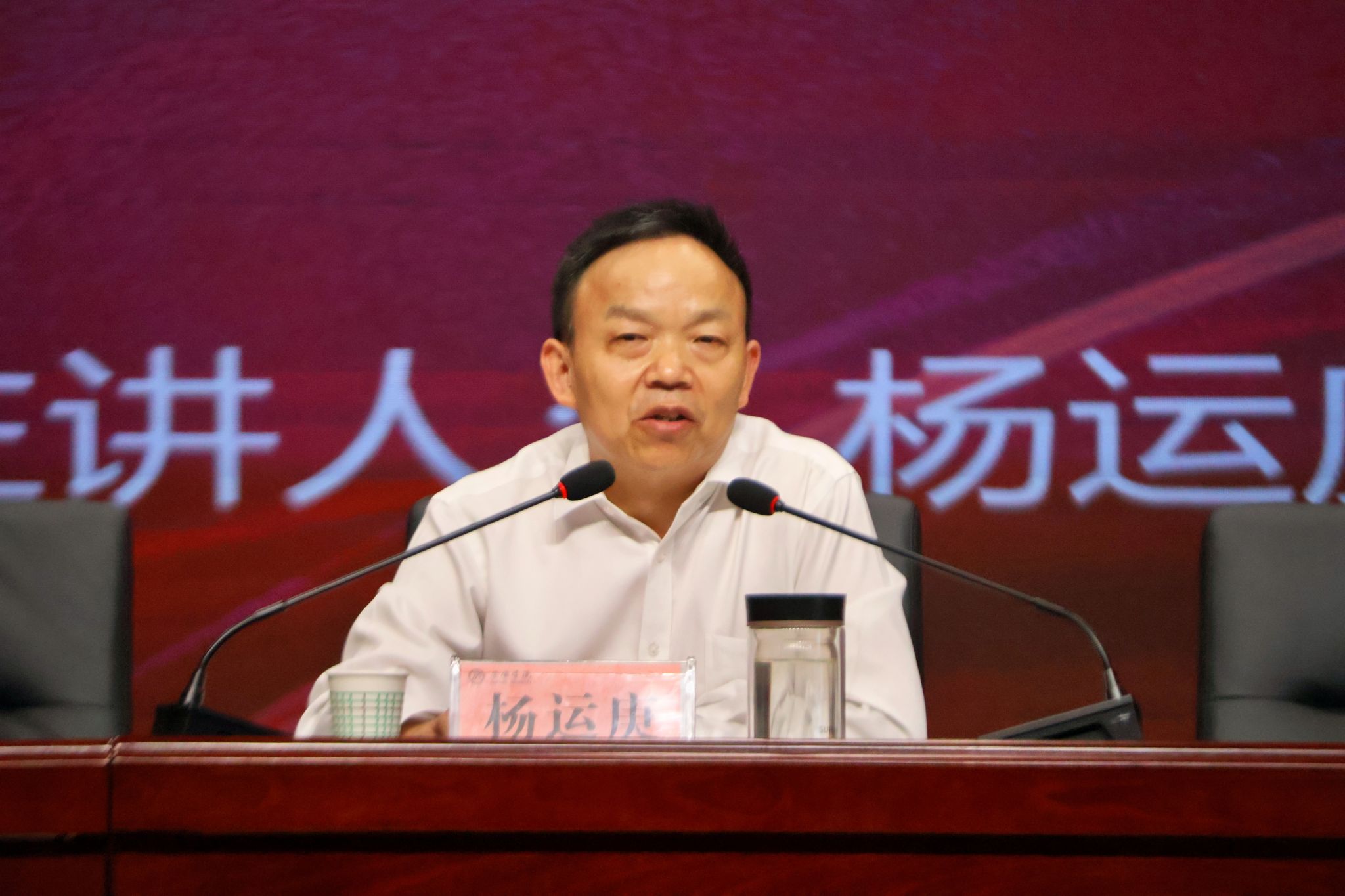 经理杨运庚以“新起点、新目标、新行动”为题,开展了入学教育第一讲,他梳理了公司办学概况和办学特色,帮助新同学树立专业自信和集体荣誉感,并提出了五个方面的要求:一是要求同学们首先思考“什么是大学”,他认为大学是创造知识、传播知识、传承文化、坚守真理的地方,是培养健全人格、塑造优秀公民、塑造品行雅正的人的地方,是助推社会文明发展、引领社会文明和社会风尚的地方;二是要思考清楚“怎么读大学”,他希望同学们要快速完成自我调试,对自己做出正确认识、评价和判断,制定好大学发展规划,做好师生和谐、同学和谐、自我和谐;三是要做到学会上课、学会自学、学会读书、学会发展“四学会”;四是要求同学们读完大学应该具备有效思考、形成正确判断的能力,具备良好交流思想的能力,具备恰当做出判断的能力,具备辨别价值的能力等四种能力;五是希望同学们在大学养成读书、写作、体育锻炼三种习惯,培养求真向善、不怕吃亏和敢于拼搏、不服输两种品格。