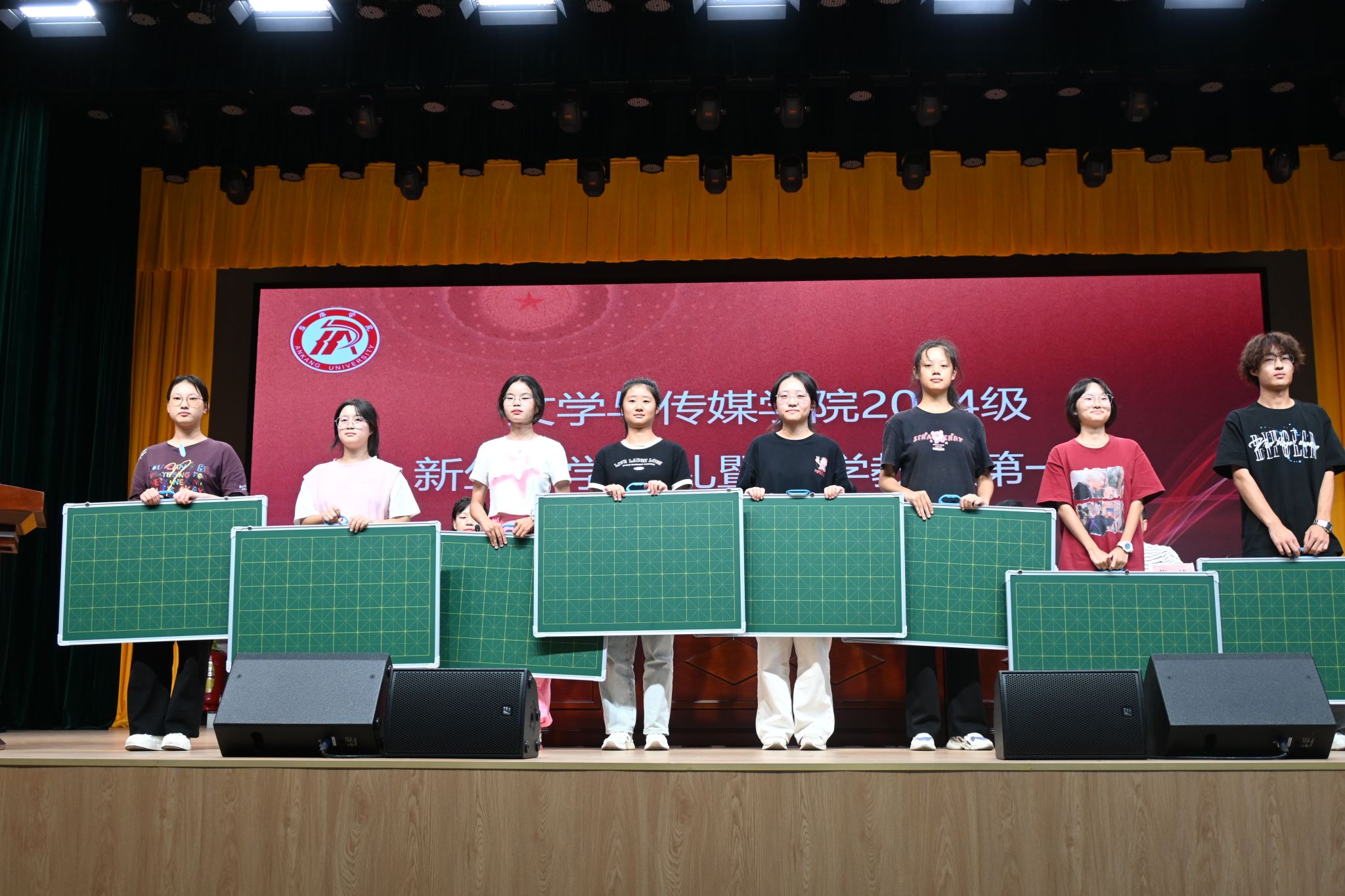 党总支书记芦伟宣读师范生每周练字要求,与会老师为新生代表分发了板书小黑板。
