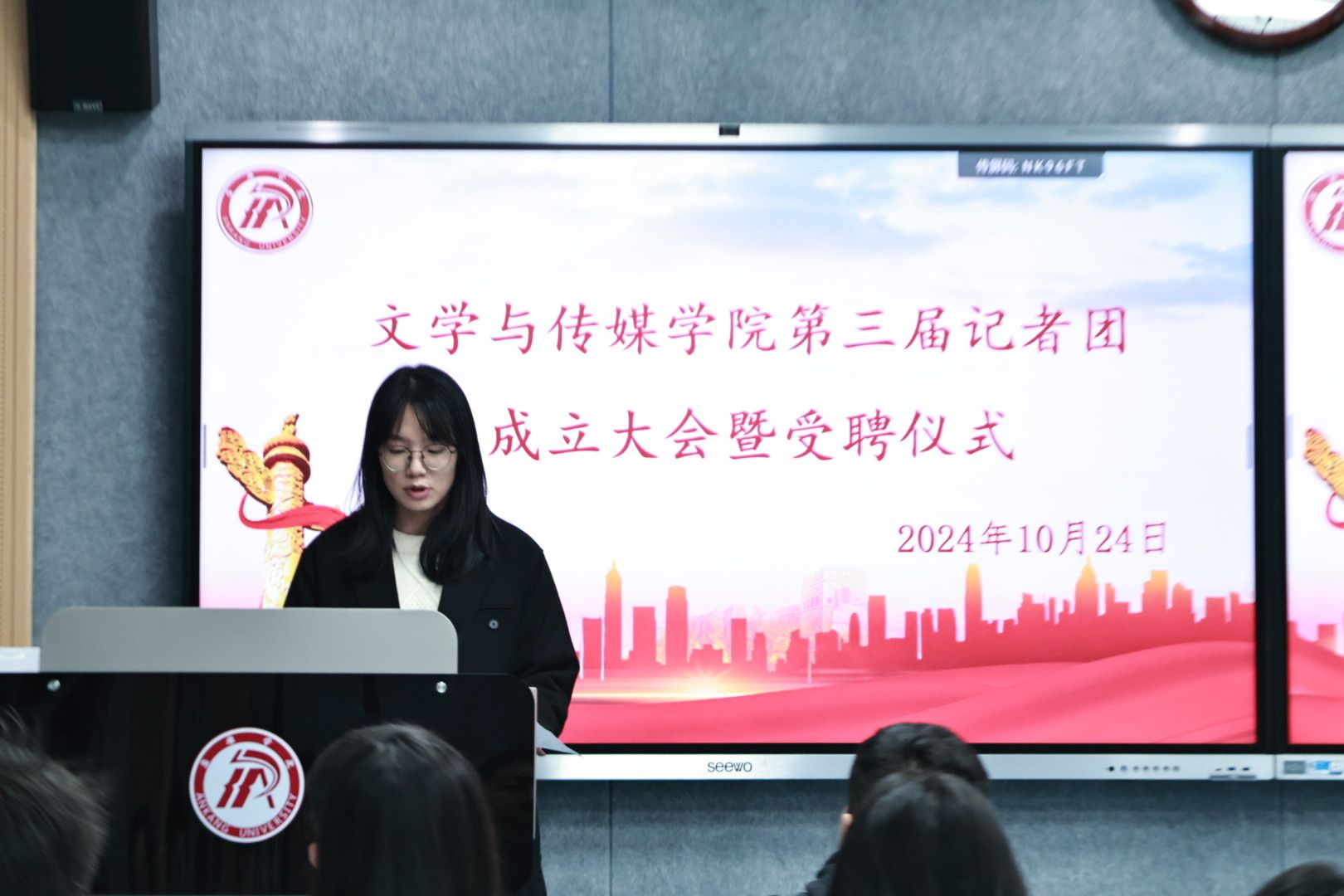 为着力做好校园正能量宣传工作,持续培养高素质、高质量的新媒体人才,做好新闻人才梯队建设,公司于10月24日晚在1205教室召开了suncitygroup太阳集团第三届记者团成立大会暨受聘仪式。公司党总支副书记杨海蓉,党政办主任崔瑜,学工办主任薛涛,辅导员刘言军、喻言,员工会主席团、团总支副书记及社团全体人员参会,仪式由记者团副主编程乐主持。