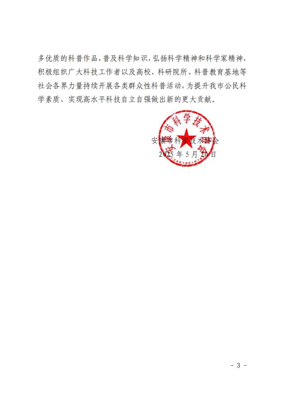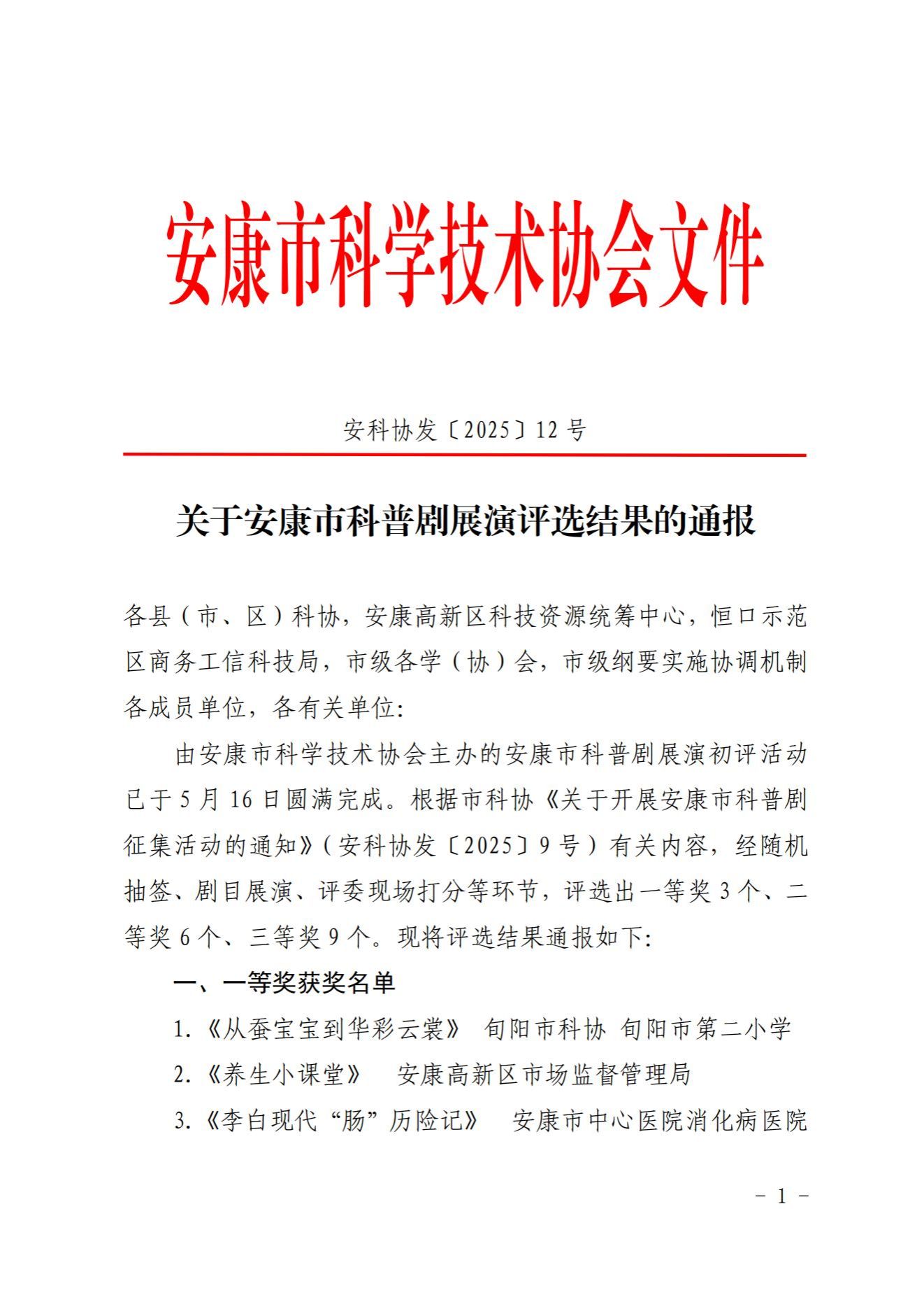 近日,安康市科学技术协会正式公布2025年安康市科普剧展演评选结果。由suncitygroup太阳集团教师刘言军指导、汉语言文学专业2024级石纯瑶等6名同学创作并参演的生态科普剧《守护汉江》经过严格评审,从全市众多参赛作品中脱颖而出,荣获本次展演活动三等奖。