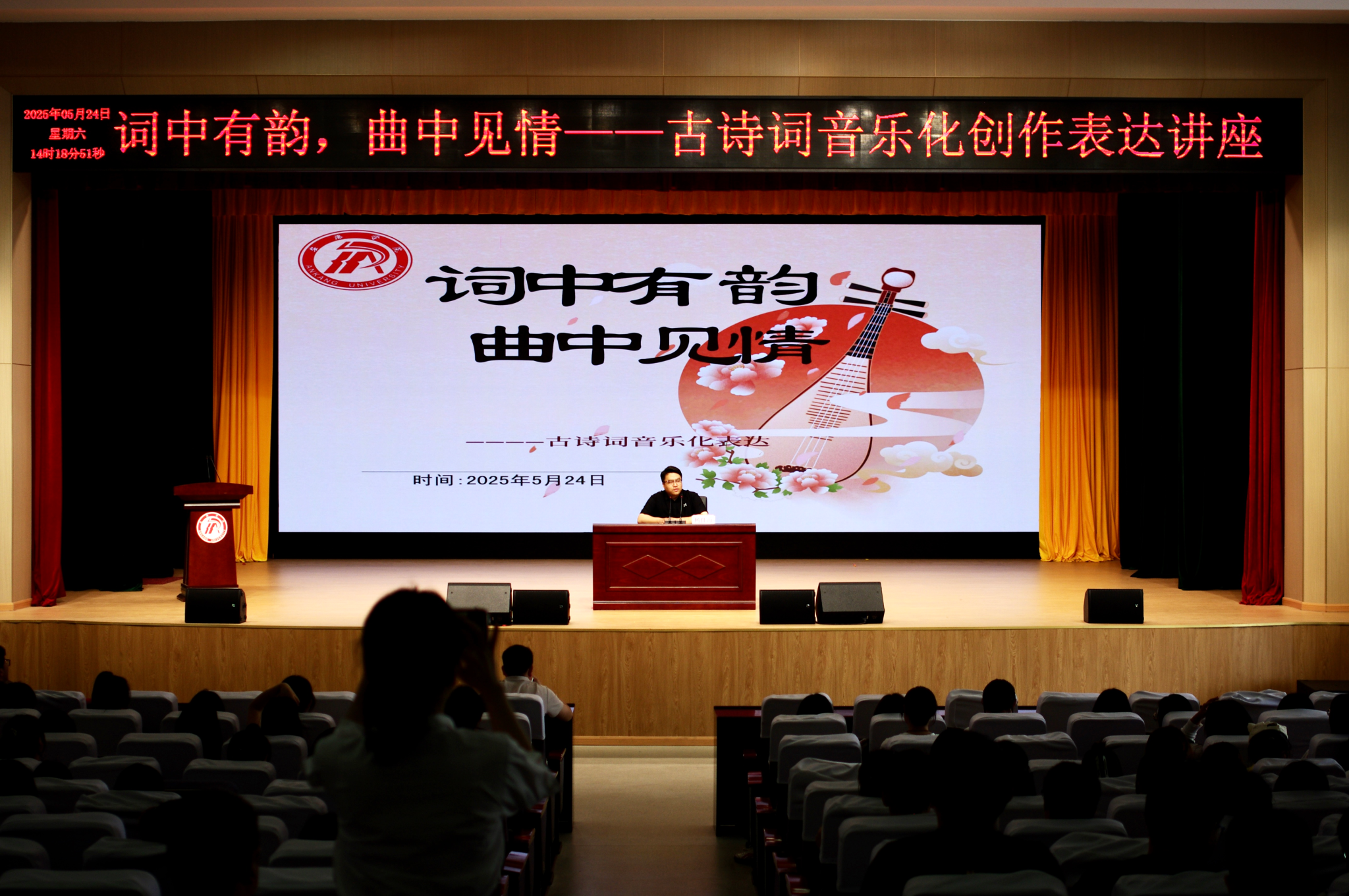 24日下午,suncitygroup太阳集团联合安康汉江大剧院在江南校区大礼堂举办了主题为“词中有韵,曲中见情——古诗词音乐化表达”的讲座。活动特邀青年美声男高音歌唱家杨仕海担任主讲嘉宾。