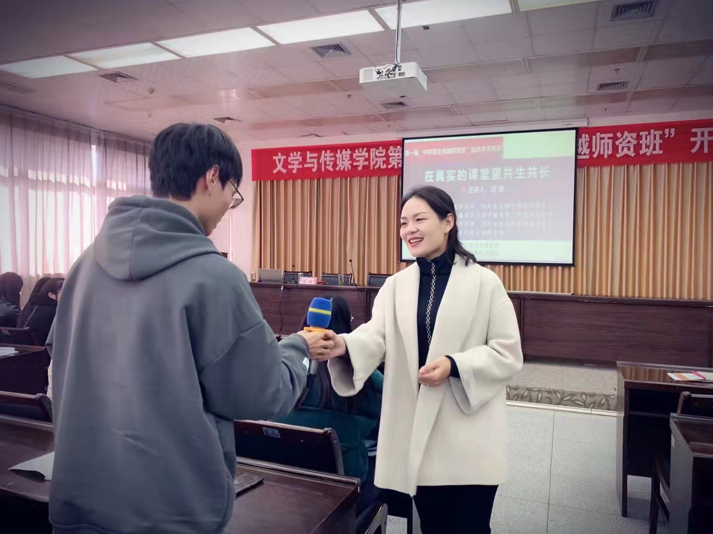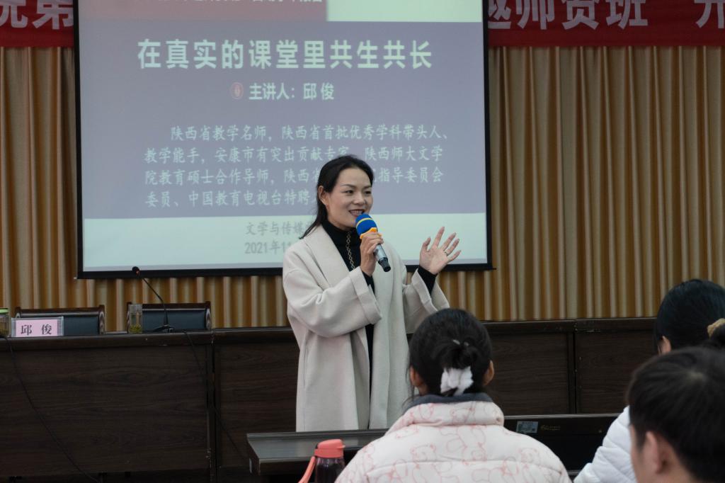 11月24日下午,陕西教学名师邱俊受邀为第一届“中学语文卓越团队班”作首场学术报告,题目是《在真实的课堂里共生共长》。学术报告由“中学语文卓越团队班”班主任张格瑄主持,94名卓越团队班员工认真聆听了学术报告。