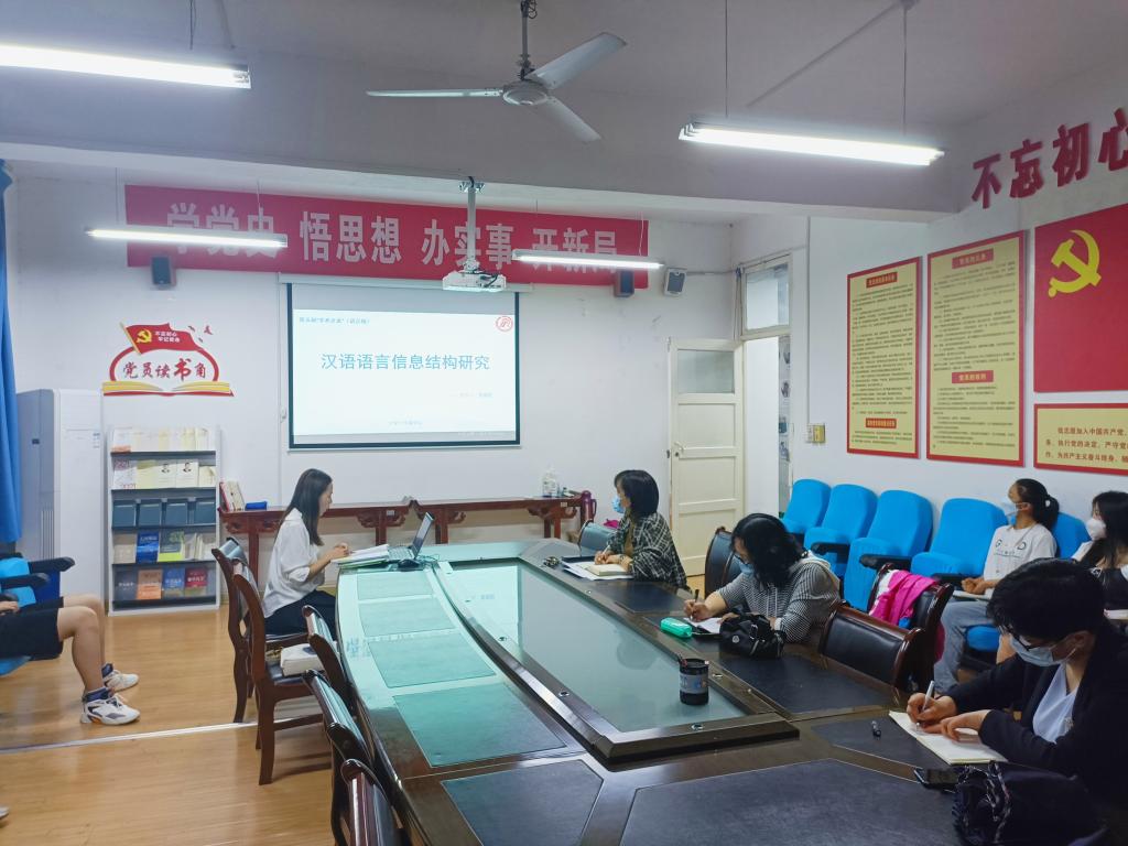 4月27日晚19点30分,​suncitygroup太阳集团语言学学科组在2307会议室举办了第五届“学术沙龙”活动周第三场沙龙活动。本场沙龙由盘珊君老师主讲,主题是“汉语语言信息结构研究”。学科组杨运庚、赵桃、李婷、周海霞几位老师和部分员工参加了活动和研讨。