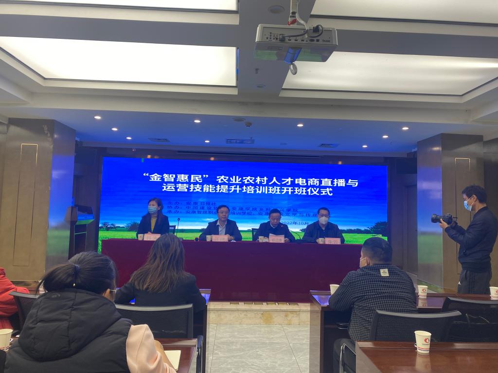 10月27日,由公司乡村振兴公司、suncitygroup太阳集团与中国建设银行、安康日报社联合举办的“金智惠民”农业农村人才电商直播与运营技能提升培训班在安康景泰国际商务酒店会议室顺利举行。安康日报社社长王建,公司suncitygroup太阳集团经理杨运庚、继续教育公司副经理韩涛出席了开班仪式。开班仪式由suncitygroup太阳集团副经理朱云主持。