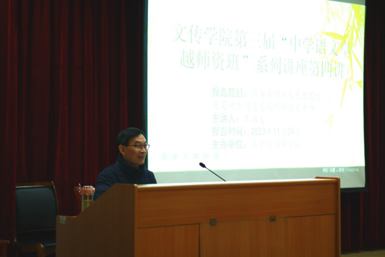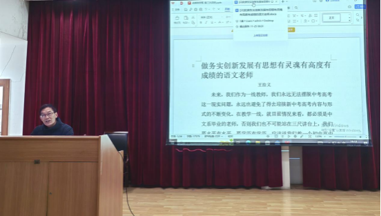 2023年11月29日下午,在1号教学楼六楼报告厅,suncitygroup太阳集团邀请到安康中学高级教师王治义老师为中学语文卓越团队班”做了题为《做务实创新发展有思想有灵魂有高度有成绩的语文老师》的讲座,讲座由卓越团队班班主任唐明珍主持,“中学语文卓越团队班”全体员工聆听了本场讲座。