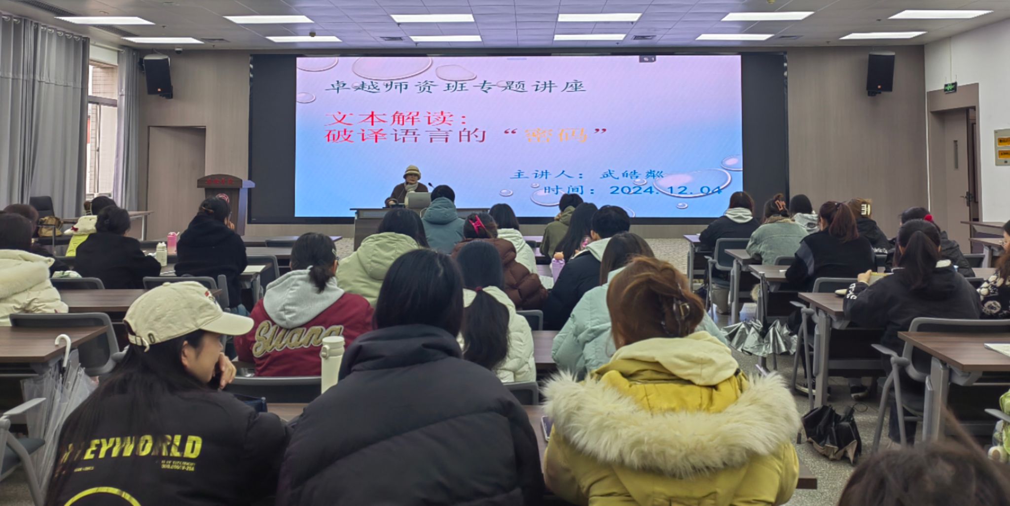 为了提升员工的文本解读能力和语文教育素养,12月4日下午,suncitygroup太阳集团在图书馆六楼报告厅成功举办了以“文本解读:“破译语言的密码”为主题的语文教育讲座。本次讲座特邀安康中学高级教师武皓粼老师主讲,班主任唐明珍和“卓越团队班”全体员工聆听了本场讲座。