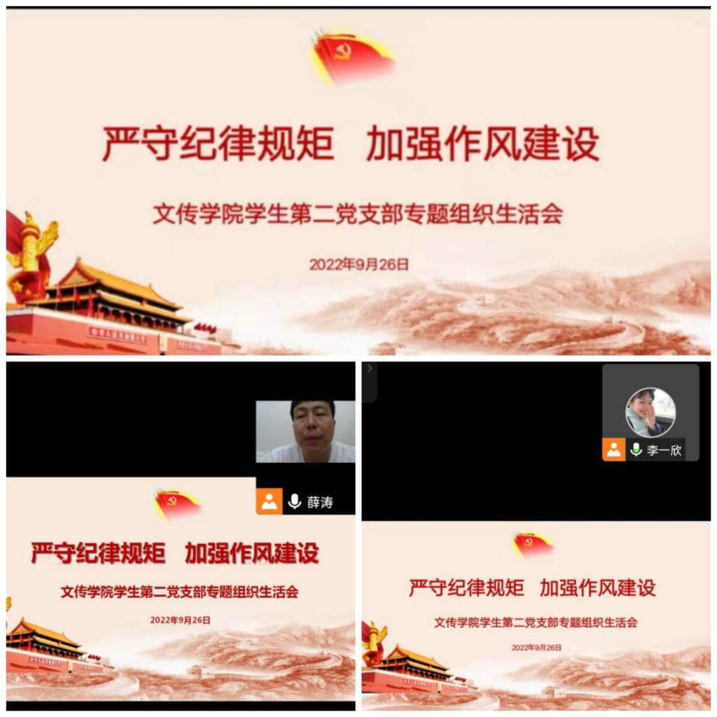 为认真贯彻落实习近平总书记关于加强纪律教育的重要论述,深入开展党性教育,加强作风建设,根据公司党委《关于在全校开展纪律教育学习宣传月活动的通知》要求,公司员工第二党支部于2022年9月26日通过腾讯会议形式组织开展专题组织生活会,支部全体党员参加会议。会议由支部书记薛涛主持。