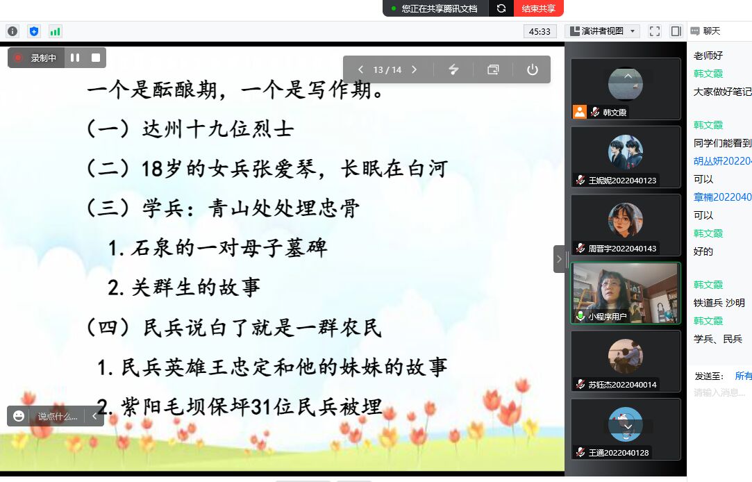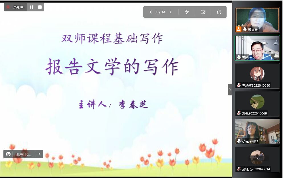 12月6日下午,作家李春芝应suncitygroup太阳集团邀请,通过腾讯会议与基础写作课校内教师韩文霞、曹刚一起,为汉语言文学专业2022级员工讲授“报告文学的写作”。