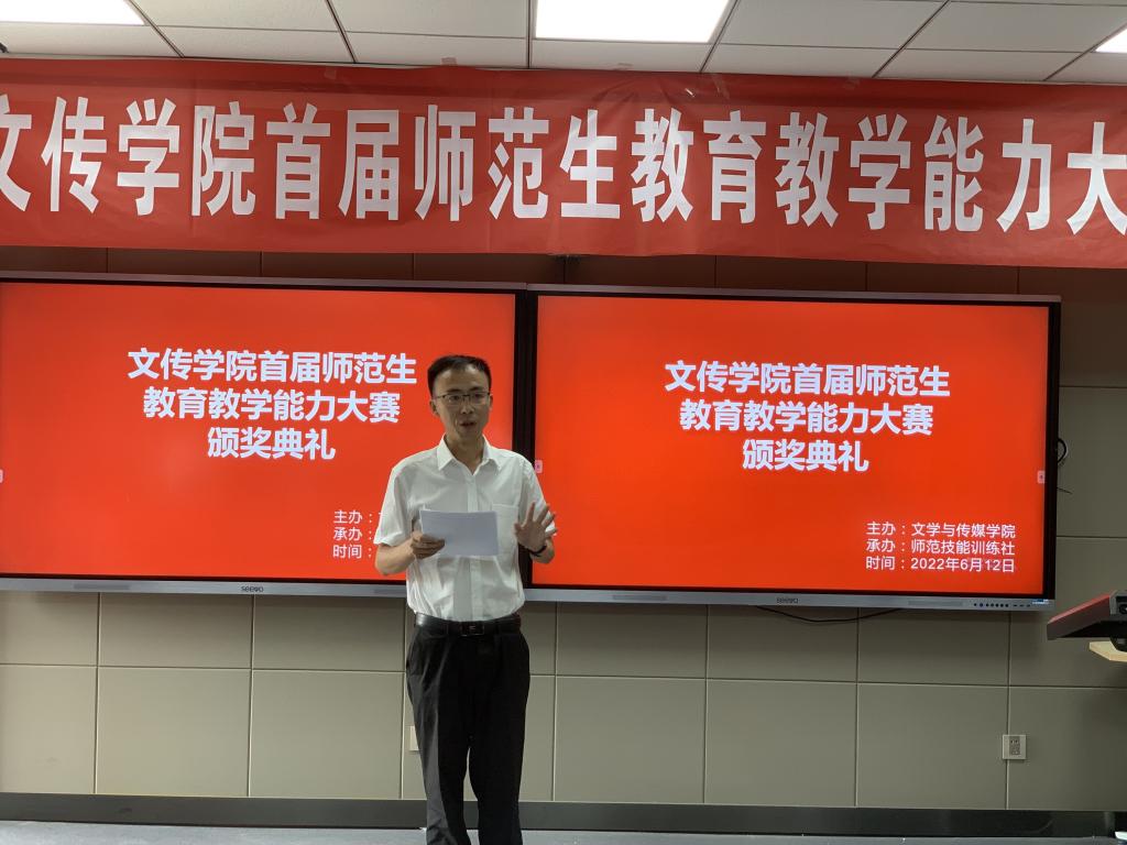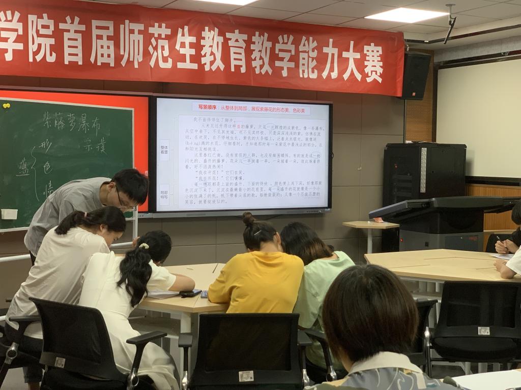 2022年6月12日,由师范技能训练社承办的suncitygroup太阳集团首届师范生公司产品能力大赛在公司师范生职业技能训练中心4204教室隆重举办。本次大赛特邀安康市汉滨区教研室高级教研员李玉恒老师,汉滨初级中学董事长助理、教务主任全东老师,suncitygroup太阳集团教学督导邸玲老师共同担任评委。suncitygroup太阳集团党总支书记芦伟、副经理朱云、党总支副书记杨海蓉、汉语言文学系主任韩文霞、语文学科教学论任课教师、师范技能训练社指导教师张格瑄在现场观摩比赛。本次大赛采用网络同步直播的方式进行,公司其他教师和员工通过校园网观摩了比赛过程。